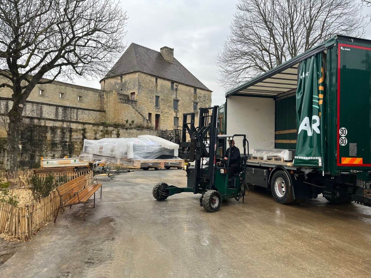 Equipped with an on-board forklift, Florent ensured a safe and efficient unloading directly at the installation site in this heritage environment ✨.